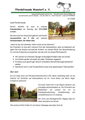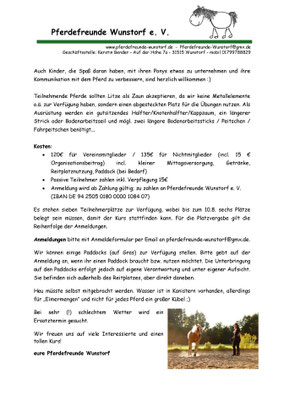 Pferdefreunde Wunstorf e. V. | Geschäftsstelle: Kerstin Bender/ Auf der Höhe 7a | 31515 Wunstorf